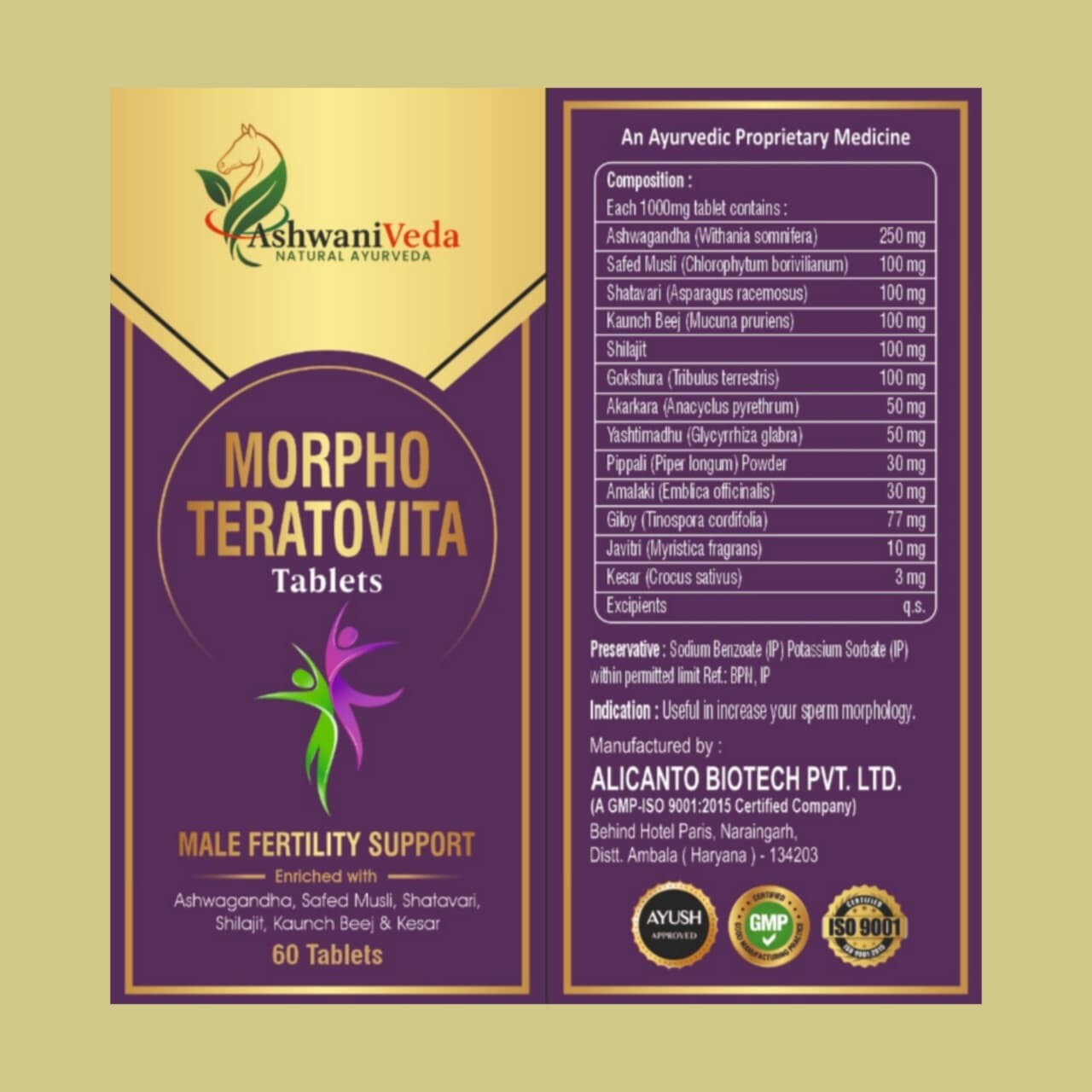 Morpho Teratovita Tablets (Male Fertility Support) एक आयुर्वेदिक proprietary medicine है, जो पुरुषों की प्रजनन सेहत को सपोर्ट करने, स्वस्थ sperm count और गुणवत्ता बनाए रखने तथा शक्ति और स्टैमिना को बढ़ाने में सहायक है।